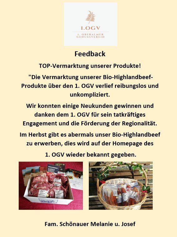 "Die Vermarktung unserer Bio-Highlandbeef-Produkte über den 1. OGV verlief reibungslos und unkompliziert.