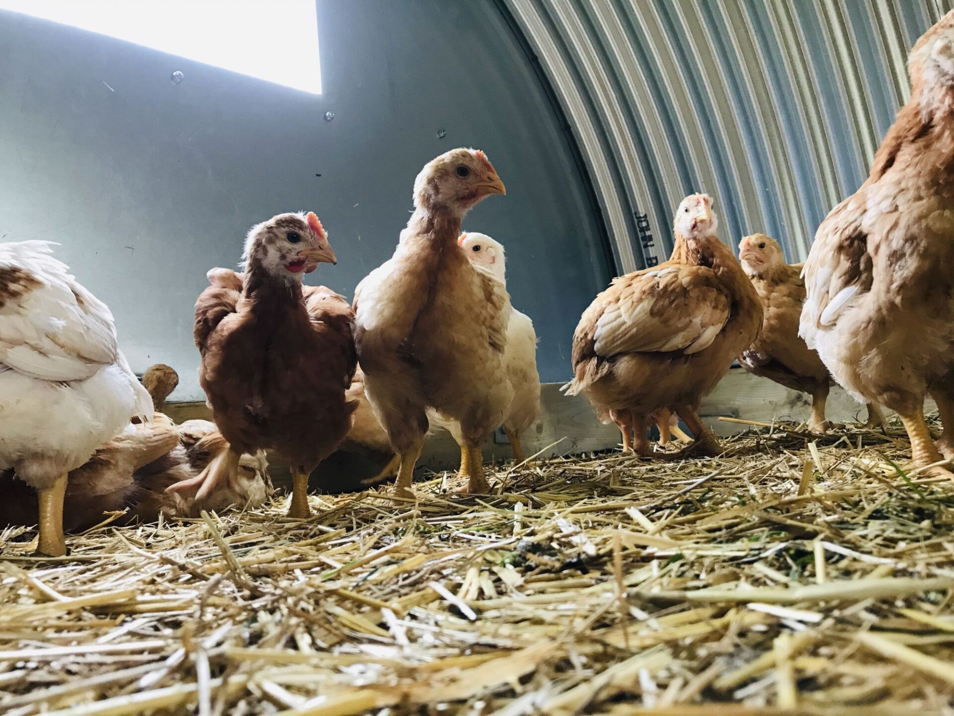 Eine robuste Rasse die langsam wächst und bestens geeignet für die Freilandhaltung ist. Als Eintagsküken ziehen sie zu uns auf den Hof und verbringen die ersten drei Lebenswochen in unserem Aufzuchtsraum.